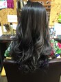 下の明るくする部分を二回ブリーチしてポイントてバイオレットカラー入れました!上の部分は暗くしているのでメリハリのあるグラデーションスタイルです☆