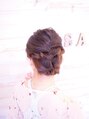 編み込みをルーズにまとめた、落ち着いた雰囲気のヘアアレンジです。結婚式のお呼ばれの時やちょっとしたパーティーの際にいかがでしょう!
