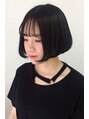 ショートボブ×シースルーバングすごく軽めに前髪を作ってあるのでサイドになじませてフロントが長いようにすることも可能です!顎より上の長さは小顔効果にもなります。