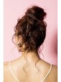 高い位置でポニーテールにして毛先がランダムに揺れるように動きをつけました。後れ毛はカールをつけてイキイキした印象を表現しました。