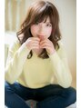 斜めバングとゆるふわカールのテッパンモテスタイル。そこにダークカラーをオンすることで、落ち着いた大人の知的な雰囲気に。カワイイだけじゃ物足りない、オトナ女子を目指す方にオススメ。顔周りのリバースカールでガーリーにして、甘さも忘れません!