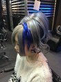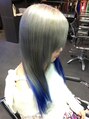 明るめシルバーと、インナーに鮮やかなブルー。ブリーチの抜けが大事です!ムラサキシャンプーで色持ちよくさせてあげましょう☆