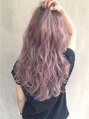 デジタルパーマでカールをつけて、色味は流行のグレージュにピンクを足した大人のロングです。オフィスカラーにピッタリです!