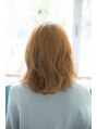 ブリーチ、もしくは黒染め落とし1回したあと、抜けた後にのこる赤味をいかして薄めにアッシュをのせたベージュカラー♪赤味を敬遠される方も多いですが、活かしてあげれば柔らかさも出せるんです!!全体をざっくり巻いてより柔らかさのあるスタイルに☆