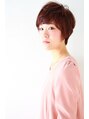 カワイらしい ショートヘアです。トップにふんわりとボリューム、束感が出るようにカットしパーマ。。カラーは秋らしく温かみにあるピンクブラウンで落ちついたイメージに
