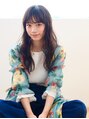 厚めバングがポイントのナチュラルロングスタイル。無造作な動きが出るようにボリュームを抑えたパーマをかけました。ウェット後、オイルワックスを中間から毛先に馴染ませドライヤーで優しく乾かせば完成。自然乾燥も可