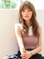女性らしくゆるやかに揺れるウェーブロング。ローレイヤーをベースに、柔らかいミルクティーカラーで透明感をプラス。