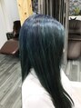 黒染めありだったので、2ブリーチそのあと、ネイビーブルーで原色系のブルーに仕上げました