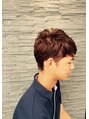 くせ毛を活かしたアシンメトリーショート!サイド刈り上げないツーブロックで柔らかい印象を残しながら左に流れた髪を動かせる!前髪はストレートアイロンで伸ばして完成!