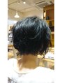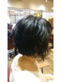 えりあしギリギリの前下がりボブにパーマをかけた可愛らしいスタイルです☆