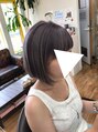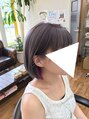 ほんのりピンクが入った、アッシュグレーカラーです。インナーカラーでパープルをいれて、少しインパクトを♪耳にかけたりすると、パープルがよく見えて可愛いです!