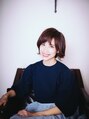 頭の形が綺麗なシルエットのショートボブ。顔まわりはマッシュラインにカットして可愛く柔らかい印象に。バングは目上で流すことで大人可愛いスタイルに。毛先ははねさせてスポンテニアスな雰囲気。ベージュブラウンで透け感と透明感をプラス!