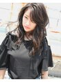 長めの前髪にパーマを施し、ニュアンスをプラス。自然な流れができるので邪魔にならずに雰囲気のある印象に。ランダムでゆるめのパーマをかけることでほどよい抜け感がでて、アッシュ系のカラーと抜群の相性。こなれた雰囲気のセミロングです。