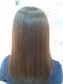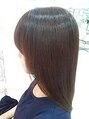 前髪は重めな感じにしてフェースラインはレイヤーが入っています。ワンレングスベースで毛先はブランドカットです。