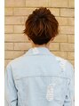 前下がりのショートボブベースに、ネープ部分はタイトにすっきりと見せてさわやかに。サイドとトップは長めの毛束を遊ばせバングをかきあげることでギャップを作って。嫌味のないセクシー&クールな雰囲気に。【EARTH金町】