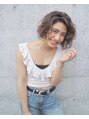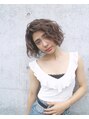 波打つカールで無造作スタイルへ。前下がりのボブを活かしてしっかりめに!カットは前下がりの顎ラインボブ。毛先は少しセニングを入れてカールが動きやすくしました。カラーはアッシュグレーにハイライトを表面に細めに少し入れて陰影を付けています。