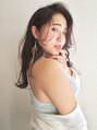 決めすぎないラフな質感のウェーブにウエットな質感のスタイリング剤でカジュアルオシャレ♪かきあげバングで大人っぽさもプラス。頑張りすぎないけど、オシャレさも忘れていないstyle♪ハイトーンでも斜めバング、センターバングでも似合います!