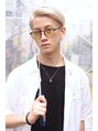 全頭をブリーチ数回の髪にホワイトベージュをオンカラー!カットは、七三分けのツーブロック刈り上げにして男らしさをUP!!ハイトーンの七三分けは外国人っぽく決まります!