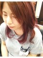 全体をレッド系のハイトーンで染めてインナーをカラートリートメントのフラッシュピンクをのせました。ある程度明るさがあればブリーチをしなくても綺麗に入ります☆(カラートリートメントは取り寄せになりますので事前にご連絡ください)