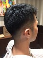 スキンフェードまでいかないけどフェード感をもたせフロントをバングさせました!シザーやセニングで連続刈りのあと直バサミのテクニックを使いシルエットを綺麗に仕上げる事で面がカッチとせずソフトな質感に仕上げられます!お髭も似合うので整えました。