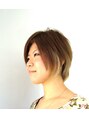 前下がりのボブベースに表面に段を入れ、中側の毛量を調節し動きと軽さを出したショートボブスタイルです!色は表面は明るめのベージュ系と中側をブリーチで明るくしたツートンカラーです♪