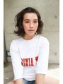 大きめカールのミックスウェーブロブ!ロブにちょっとだけガーリーさをプラスしたスタイルです!毛先のカール感とランダムにかけたウェーブがポイントです!カラーはダークなシアーブルージュで!