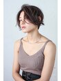 前髪を上げた大人っぽいショート。無造作に毛先もはねさせるようにスタイリング。量が多い方は襟足を短くすると、すっきりと見えます。