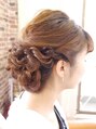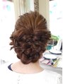 襟足を見せたくないとのことでしたので、みつあみを襟足にかぶせるようにしてセットしました!ハーフアップと迷われていましたが、夏は汗や湿気でカールが取れやすいのでアップがお勧めです☆彡