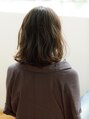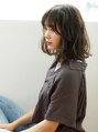 肩下で重めに作ったボブスタイルです。前髪を厚めに作り顔まわりを包んでいます。セットは毛先を外にはねさせて、前髪にワックスを多めに付けてコームでとかしておでこが透けるように毛束をずらして完成です。