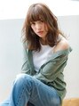 柔らかい質感のパーマで女性らしさの光るロブ スタイル。厚めバングでお顔を小さくみせる効果大。オイルとワックスを揉み込んで仕上げます。