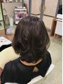 ゆるふわなイメージでカットしたスタイル。アンダーのベースはボブラインでカットしてトップはレイヤーを入れてゆるい感じに動きを出しました。カラーではハイライトを入れて立体感でふんわり効果あり!さらにベースがグレイッシュな色なのもポイント!!