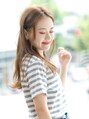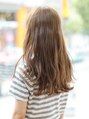 前髪なし、センターパートのシンプルなスタイル。顔にかかるように作った長めの前髪が丁度いいニュアンスに。洗いざらしで仕上げられるお手軽さも魅力。