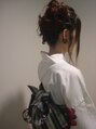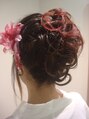 前髪はやや長めのレイヤースタイル。トップはボリュームを出し、ネープはかなりセニングをしているため毛量が少ないので巻きおろします。