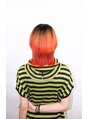 一回のブリーチでもチャレンジしやすいオレンジ。色素が抜けた毛先にカラートリートメントでオレンジに。カットであえてぱつっとした質感が残るように毛量調節したマッシュウルフ。