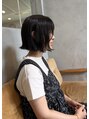 乾かすだけで、内巻きに自然になる、パーマです。カットは、前上がりで、優しく柔らかい印象にしたい人にオススメです。
