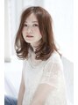 ルーズで無造作なセンターパートミディアムスタイル。カラーは春らしいミントグレージュでふわふわ感を!カットは顔周りと表面を軽くしてるので、ゆる巻きするだけでふわふわに。動いても風に吹かれてもかわいいスタイル。