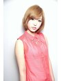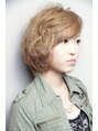 ハチ下はグラデーション、ハチ上はレイヤーでダイヤフォルムになるようにカット。クリープパーマでミックス巻きでイレギュラーなカールをつけました。カラーはふんわり見えるようにハイライトを加えたエアリーグリーンで。