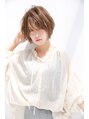 小顔に見える厚めバングの斜めバング。流し前髪の大人かわいい、毛先のみアンニュイカール。モダンショートとグレージュショートの混ざったスタイルです。無造作な毛先はワンカールで巻いてます。前下がりだけどマッシュなスタイルで黒髪でも似合います。