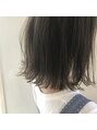 眉上バングに、肩ラインのパッツンlobhairカットは束感カットと3D立体カットで、外国人のようなブラントな中にもルース感を。カラーは、光に当たって透けるシアーなグレーカラーで外国人風に。
