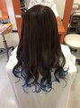 元々長さがある地毛に明るいブルーのエクステを付けました♪ポイントで見える感じなので派手にもなりすぎずとてもオシャレです♪いつものスタイルに飽きたっていう方お勧めです♪エクステならこんなブルーのお色も髪を傷めず簡単に挑戦できますよ♪