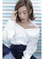 切りっぱなしのボブスタイルに大人女性の雰囲気を出すためにバングは長めにしました、毛先は外ハネにし方がは耳掛けに。カラーもアッシュ系とベージュ系のカラーをブレンドし透明感を出しました。[ブックマーク]をクリックしご利用ください。