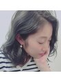 お手入れの楽なミディアムレングスのボブ。ワンブリーチ後にブルー系モノトーンカラーを重ねました。一段とミステリアスな雰囲気に♪