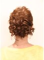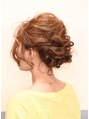 全体を軽く巻いたら、ねじってツイストカールをつくり、後ろで留めます。毛束を大きく崩しながらピンを留めるとランダムにルーズなカールがつくれます!トップも、まとまりすぎないように束感を意識して高さをだすとナチュラルに仕上がります。