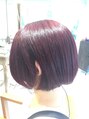 これぞ小顔ショートボブ♪やや前下がりでお顔にフィットするシルエット♪大人かわいいオフィスカジュアル♪カラーリングは7レベルのチェリーレッドカラーで大人フェミニンに!!