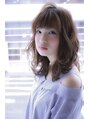 透明感のあるラベンダーアッシュカラーにやわらかいカールの可愛いミディアムスタイルです。