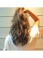 バレイヤージュオンブルージュカラーきれいな色を出すため、ブリーチで毛先全体と表面と内側にホイルワークを施しました。巻くと光が入り、透明感がでます。色も、灰色に近い色に仕上げました。