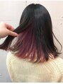 黒ベースにベリーピンクのインナーカラーでとことんガーリースタイルに。