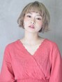 全体2~4回ブリーチ後、薄めのラベンダーベージュに。リップラインの切りっぱなしショートボブにカット。バングは束感が出やすい、シースルーバングに。