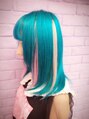 iDOL Candye Syrupのいちごちゃん来てくれました。いつもと同じ薄めのブゥードゥーブルーに、今回はピンクにティンセルを入れたピンクの濃淡をつけたメッシュのエクステをいれました。