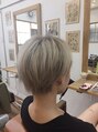 ブリーチを2、3回ほどした後にパールベージュをのせて日本人らしさを排除しました。根元を暗めに染めて立体感を強調してあるのでショートとの相性もバッチリ!
